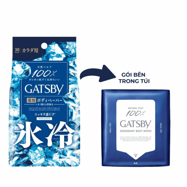 Khăn Khử Mùi Cơ Thể Mát Lạnh Gatsby Ice-type Deodorant Body Wipes 30 Tờ/gói