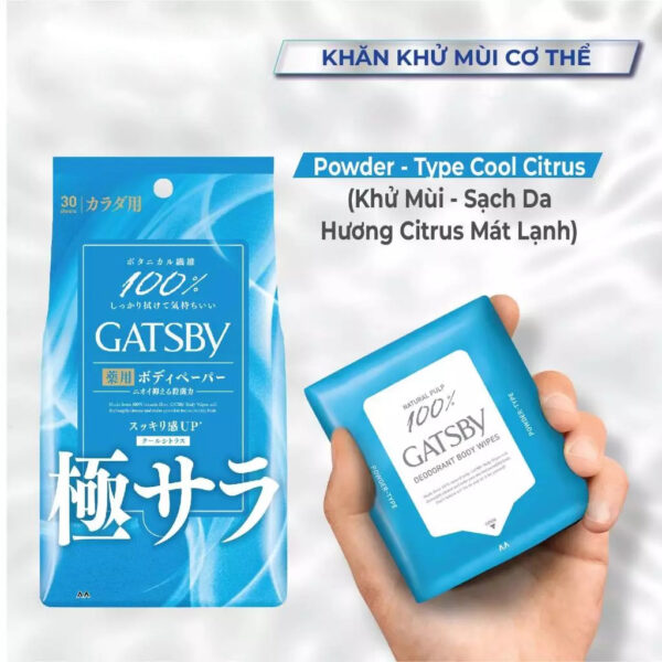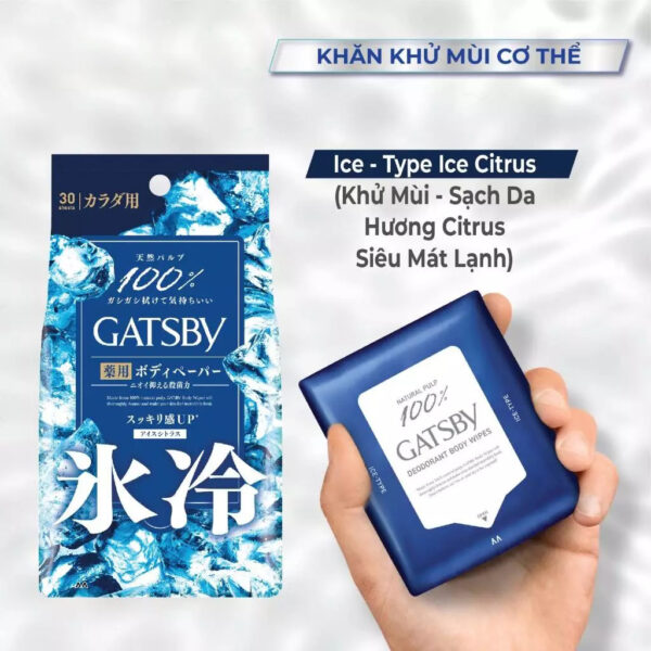 Khăn Khử Mùi Cơ Thể Gatsby Ice-type Deodorant Body Wipes Power Cool Citrus Z Mát Lạnh Mịn Da