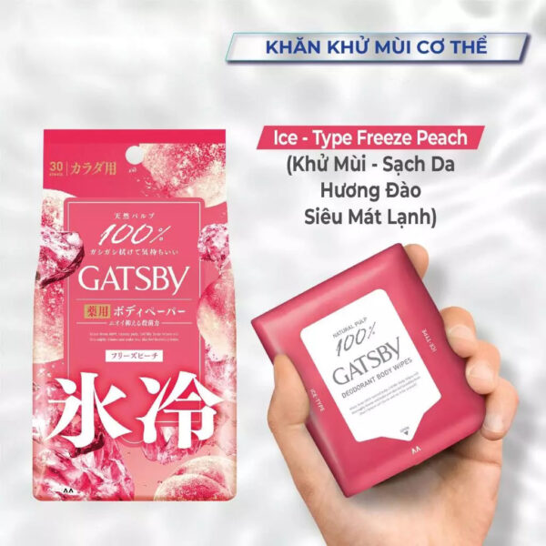 Khăn Khử Mùi Cơ Thể Gatsby Ice-type Deodorant Body Wipes Freeze Peach U Siêu Mát Lạnh Hương Đào
