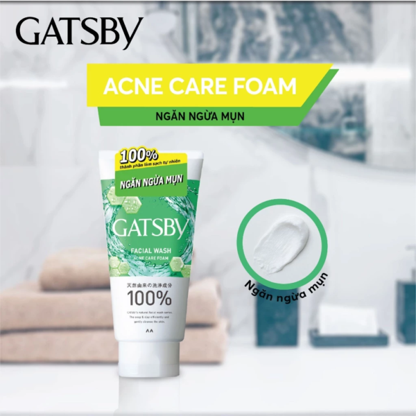 Sữa rửa mặt ngăn ngừa mụn Gatsby Facial Wash Acne Care Foam Ap làm sạch da, loại bỏ vết bẩn ở lỗ chân lông, giảm bóng nhờn trên da và làm sạch lớp dầu bẩn khó trôi cùng bã nhờn trên da mặt nam giới. Ngăn ngừa mụn, giữ cho da mặt sạch sẽ.
